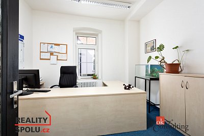Jedná se o kancelář o ploše 32 + 15 zázemí , kde je WC, sprcha, boiler, umyvadlo, nábytek , kožená sedačka a stěna, skříně….. Nájem 8500 Kč / měsíčně , pro plátce DPH bude účtováno DPH.