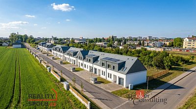 Můžete si vybrat z 8 moderních nízkoenergetických řadových domů, které se pyšní nejenom promyšleným urbanistickým konceptem, ale také kvalitními materiály a poctivým technickým řešením. Dispozice 3+KK až 5+KK, obytná plocha 79–133 m², pozemky cca 300 m², parkování u domu nebo v garáži dle varianty. Klidná lokalita s kompletní občanskou vybaveností a výbornou dostupností. Cena od 6 999 000 CZK do 8 699 000 CZK.
